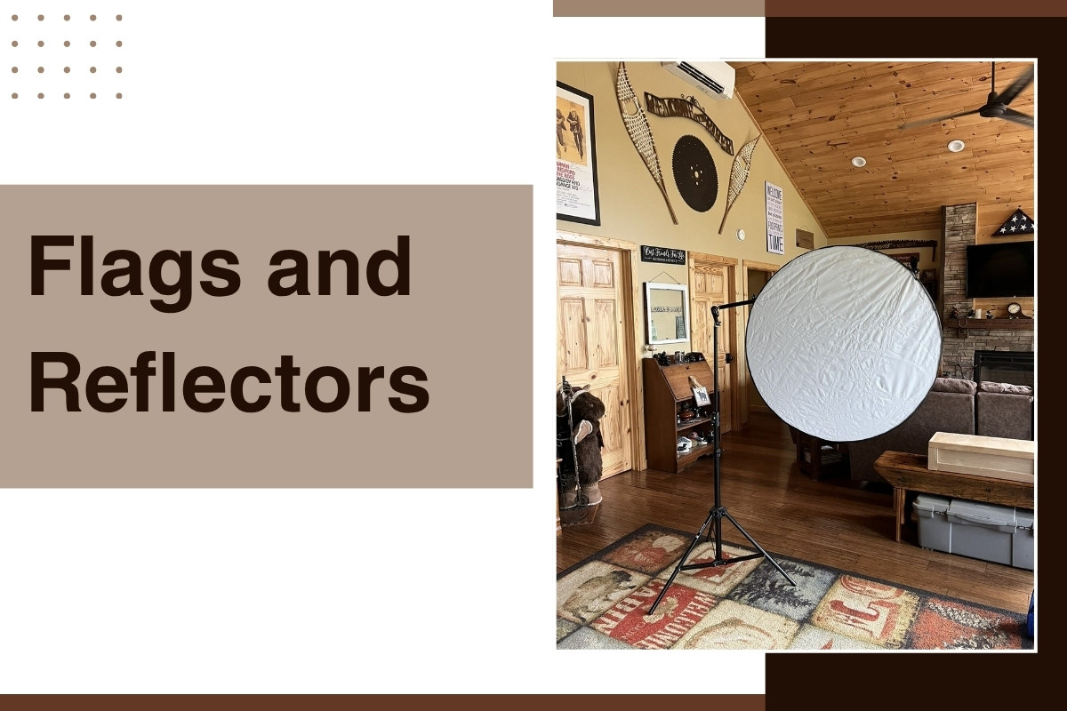 Flags and reflectors are low-cost but very powerful lighting accessories. A five-in-one collapsible reflector can soften direct sunlight, bounce light into areas that are shaded, or even block unwanted glare. In order to keep the illumination focused where you need it, flags—black panels or cloths—help control spill light. During interior photography, these easy-to-use tools significantly improve the natural light balance.