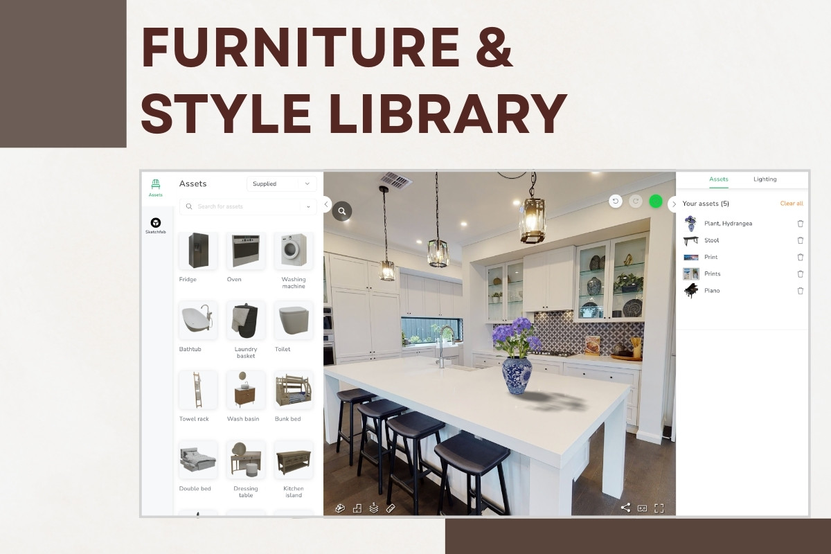 Quality staging often depends on the richness of the 3D furniture and decor library. A larger library allows for the full potential of the space to be showcased and provides design flexibility. However, you should also carefully consider the availability and quality of furniture libraries from various providers.